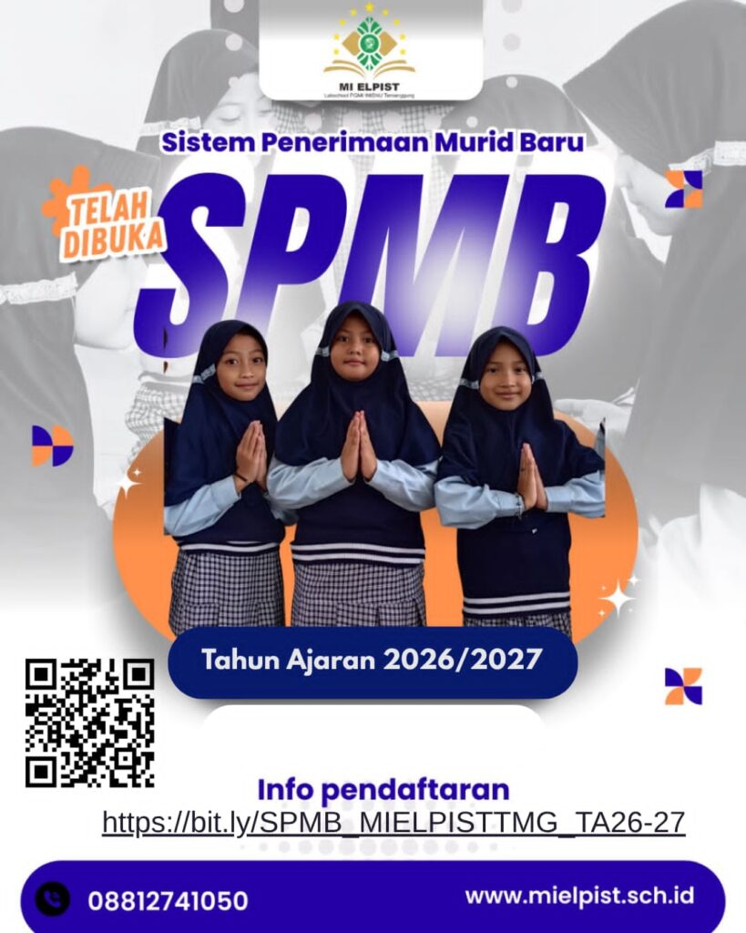 Temanggung, 7 Oktober 2025— Madrasah Ibtidaiyah (MI) Elpist Temanggung secara resmi membuka Seleksi Penerimaan Murid Baru (SPMB) untuk Tahun Ajaran 2026/2027. Pendaftaran dibuka mulai Selasa, 7 Oktober 2025, dan dapat dilakukan secara offline maupun online oleh calon peserta didik maupun orang tua/wali.