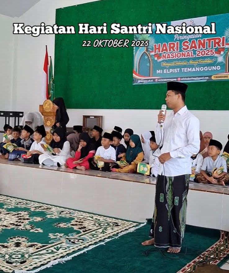 Temanggung — Suasana pagi di lingkungan MI Elpist Temanggung tampak berbeda pada Rabu, 22 Oktober 2025. Seluruh siswa kompak mengenakan busana bernuansa santri dan mengikuti rangkaian kegiatan dalam rangka peringatan Hari Santri Nasional (HSN) 2025 yang berlangsung dengan khidmat dan penuh semangat kebersamaan.